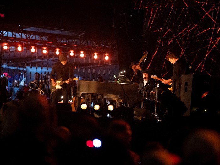 • Bob Dylan (on piano) performing at Farm Aid 40